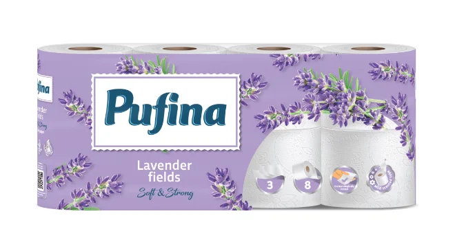 Hârtie igienică Pufina, delicat și puternic, cu imprimeuri deosebite pe fiecare foaie. Pufina încurajează grija față de natură, cu ambalajul și tubul 100% reciclabil.