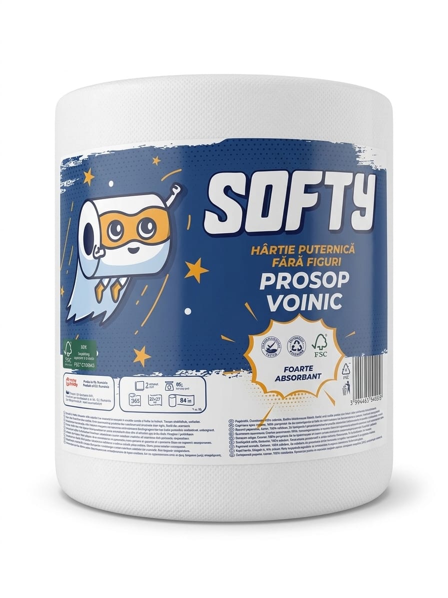 Prosopul de bucătărie Softy, monorolă, are capacitate foarte absorbantă, fiind soluția optimă pentru bucătării ocupate, și nu numai.
